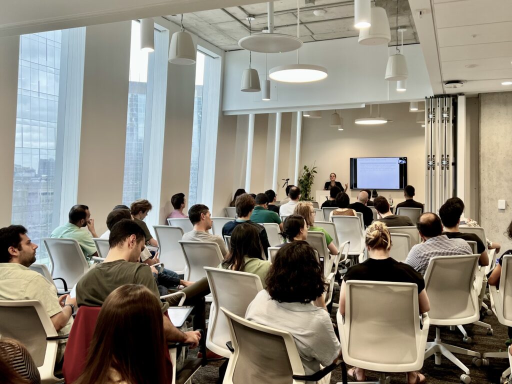 The day’s first major breakthrough came from Ruth Urner, Vector Faculty Member and Associate Professor at York University, whose work on tolerant adversarial learning offers a pragmatic solution to a longstanding problem. Traditional adversarial robustness – making AI models resistant to malicious inputs – has been computationally intractable. Urner’s team discovered that allowing some controlled flexibility in robustness requirements enables “almost proper” learners with linear rather than exponential complexity.