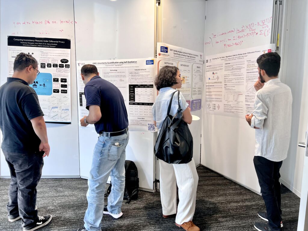 Additional lightning talks covered everything from exponential convergence in projected Langevin Monte Carlo (Alireza Daeijavad, McMaster University) to locally optimal private sampling (Hrad Ghoukasian, McMaster University), showcasing the field’s theoretical depth.